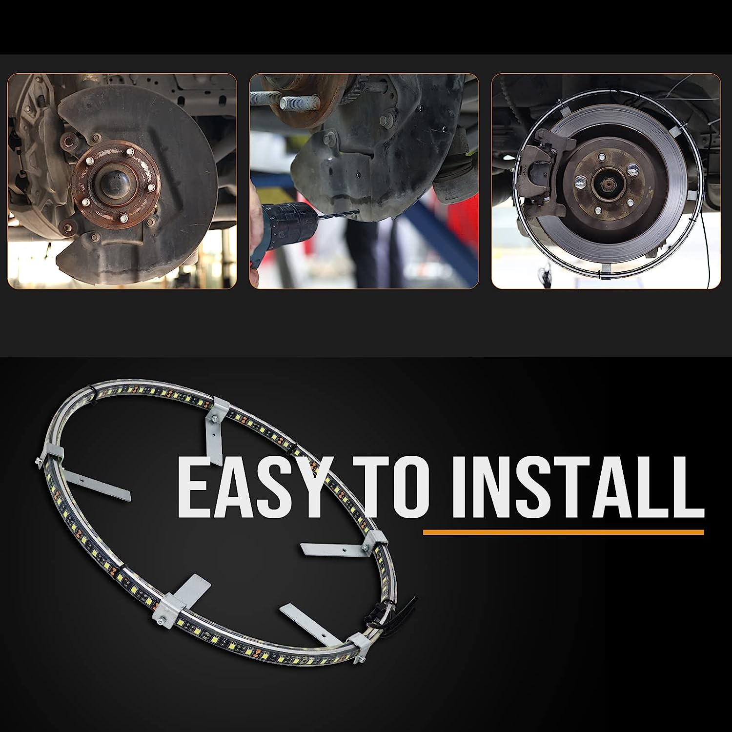IP67 waterproof, LED wheel light strip is coated with silicone polymer, waterproof and high temperature resistant. Die cast aluminum housing, shockproof/dustproof/rust proof. 10 levels of brightness, adjustable from 10% to 100%, can meet your different lighting needs. |
