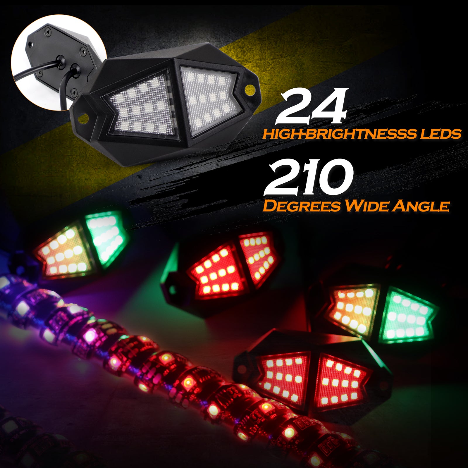 With 12 preset static colors and RGB color wheel,Over 300 Eye-Catching Patterns, including Chasing, Strobing, Stacking, even Sequential Lighting Effects. |